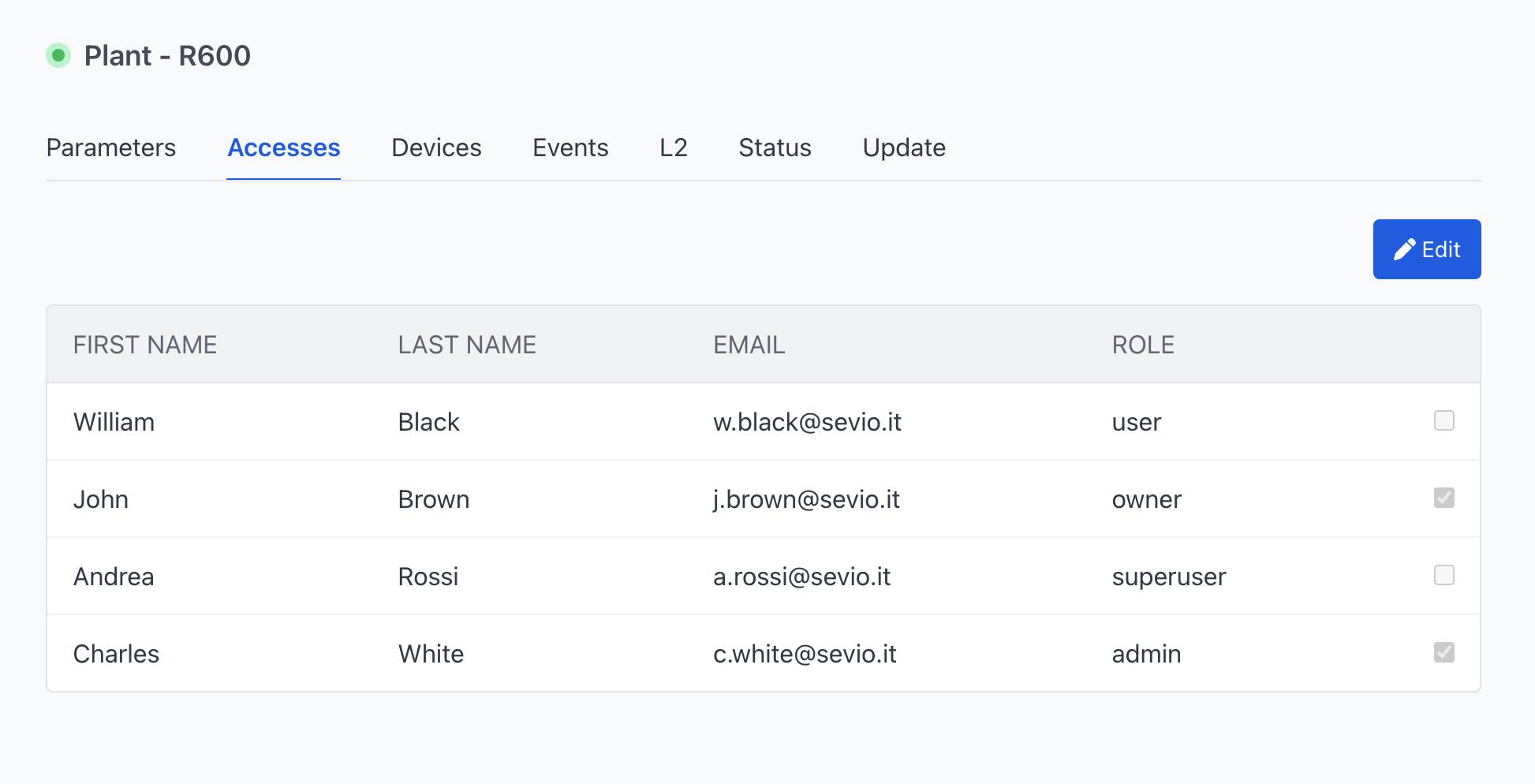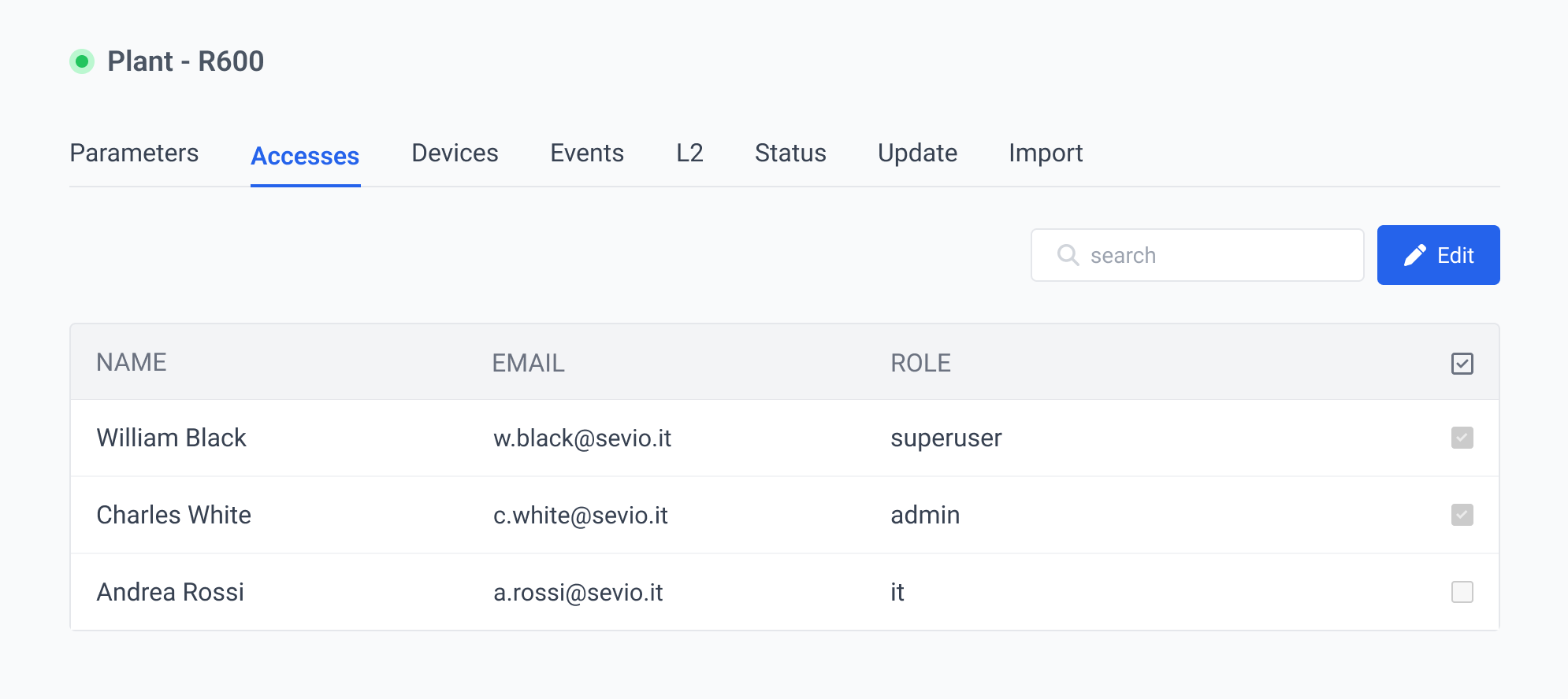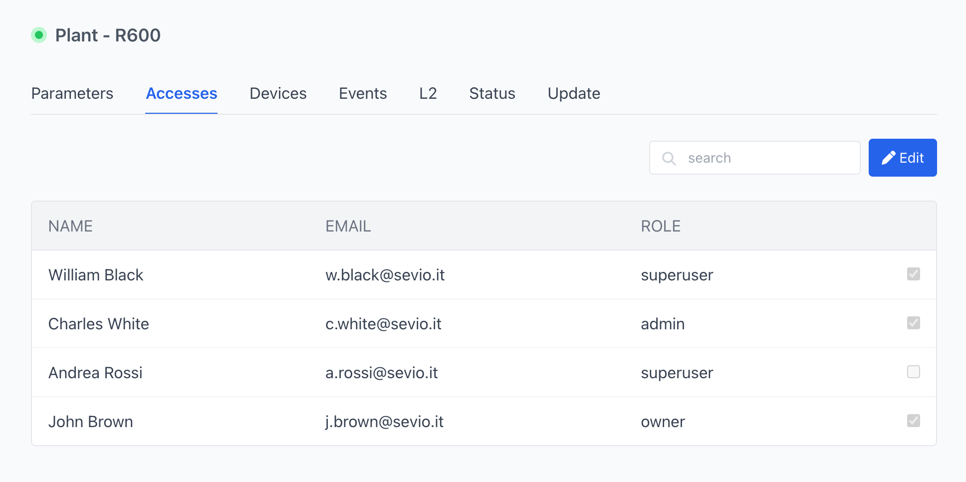 The Accesses Submenu in Sevio Portal allows you to view and manage Operator access to the Router.