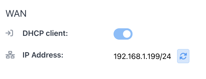 - Enabled - if a DHCP Server is available on the installation site's network, the Sevio Router automatically receives the necessary network settings. Click to view the assigned network configuration.