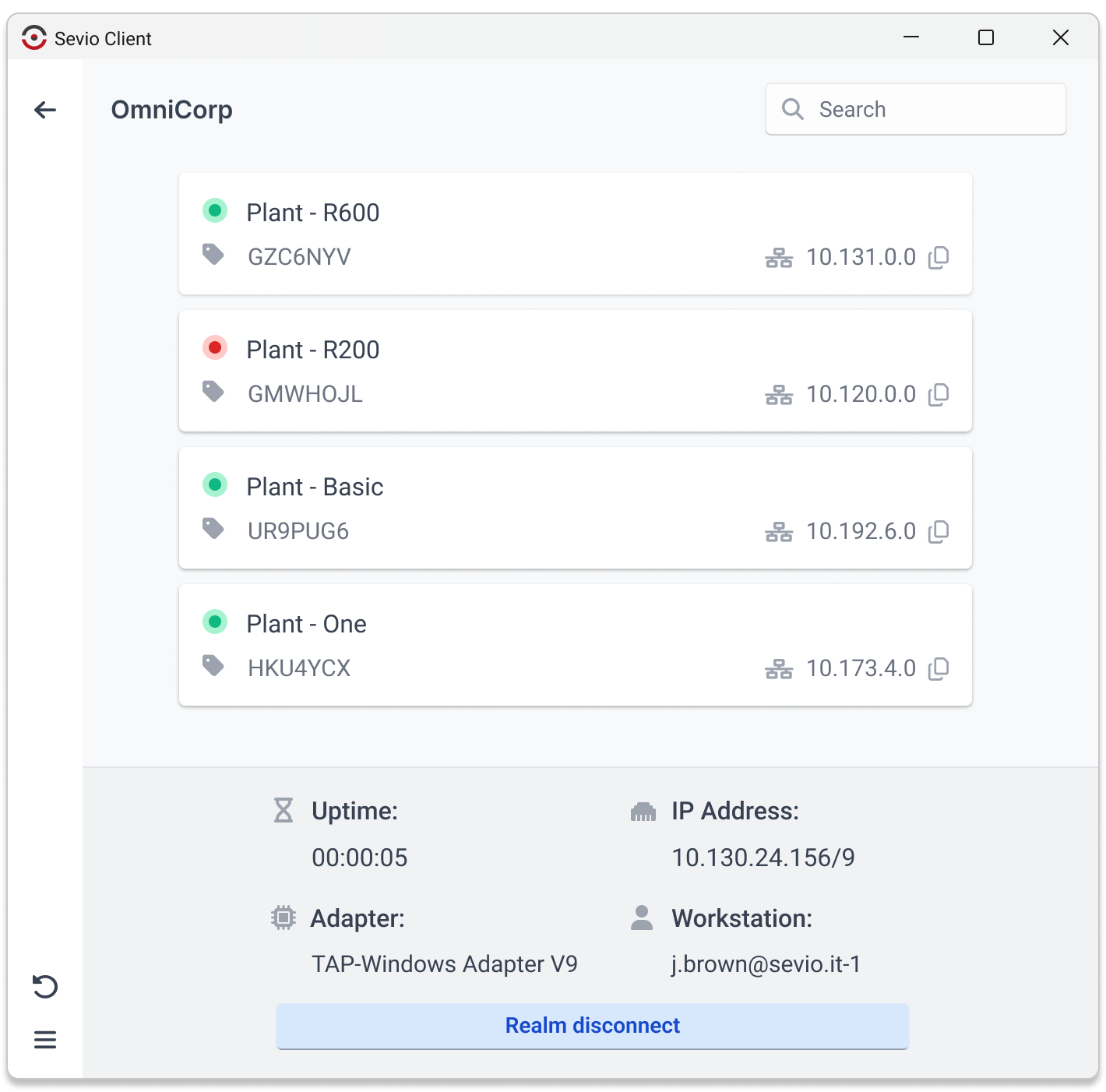 You can filter the list of Realms and Devices using the Search field.