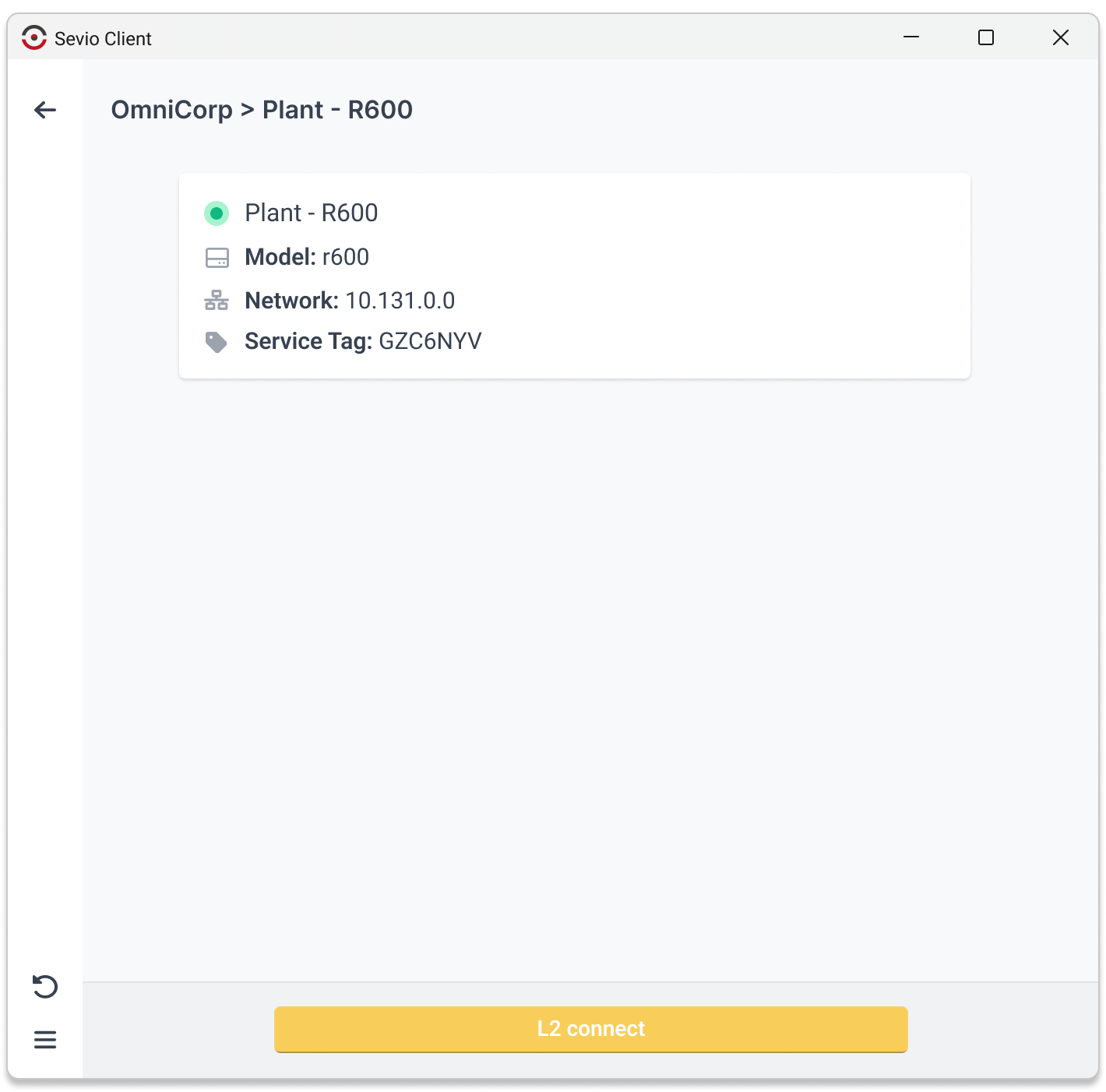 For SV Series Routers and Operators with the User role, the L2 Connect button is disabled.