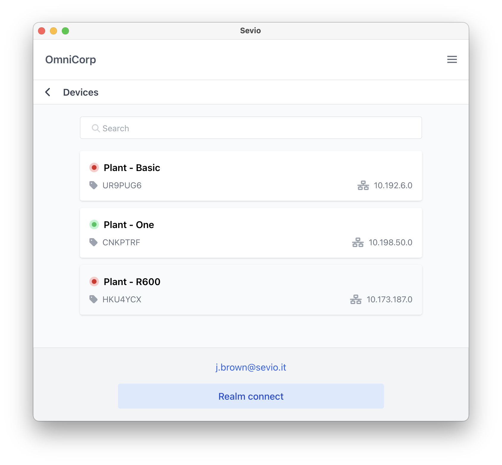 The Device list includes only the Routers for which access has been enabled from Sevio Portal, irregardless of the Operator’s role.