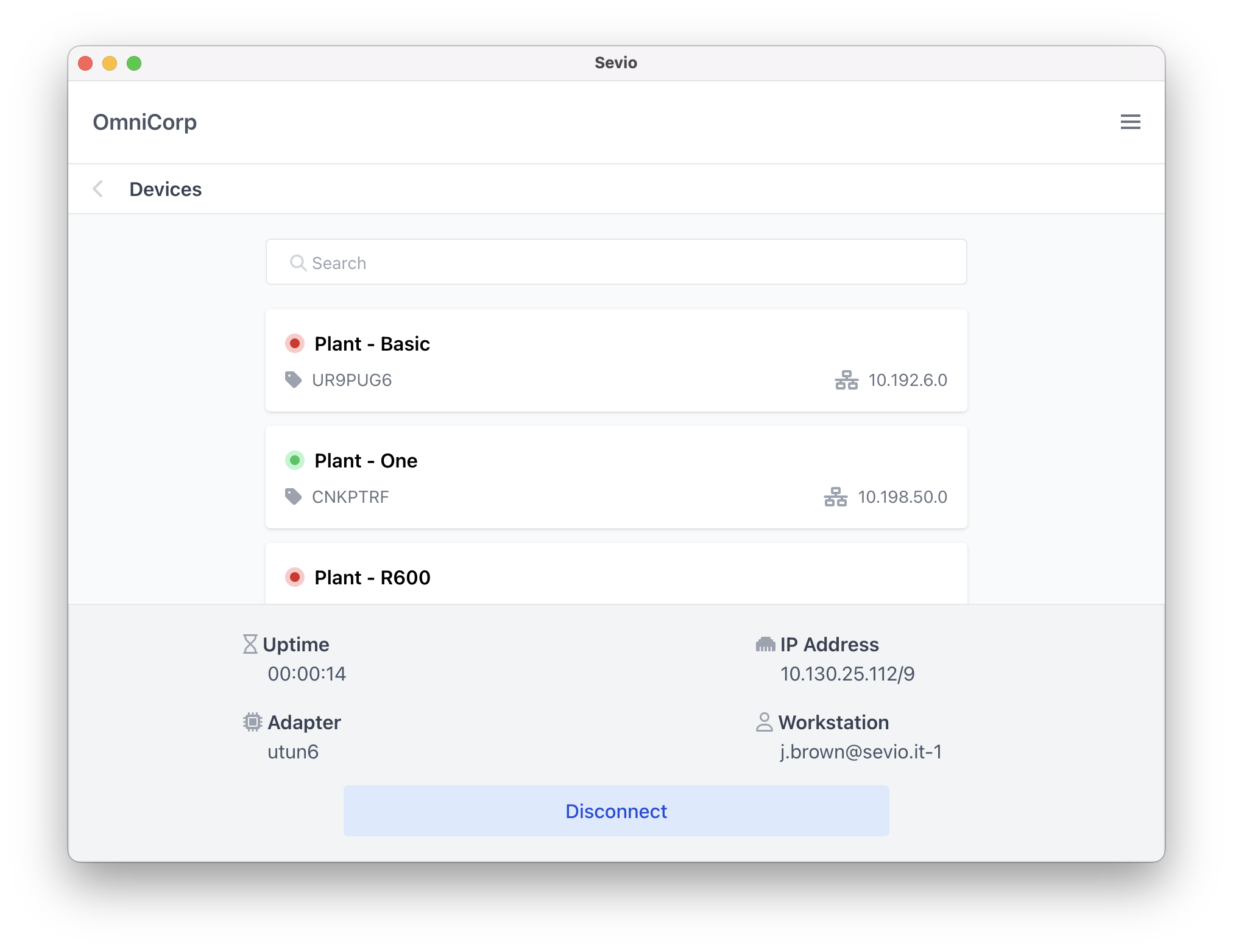 Sevio Client provides fast and secure access to remote plants. The Sevio VPN allows Operators to monitor and manage Devices at any time and from multiple Workstations.
