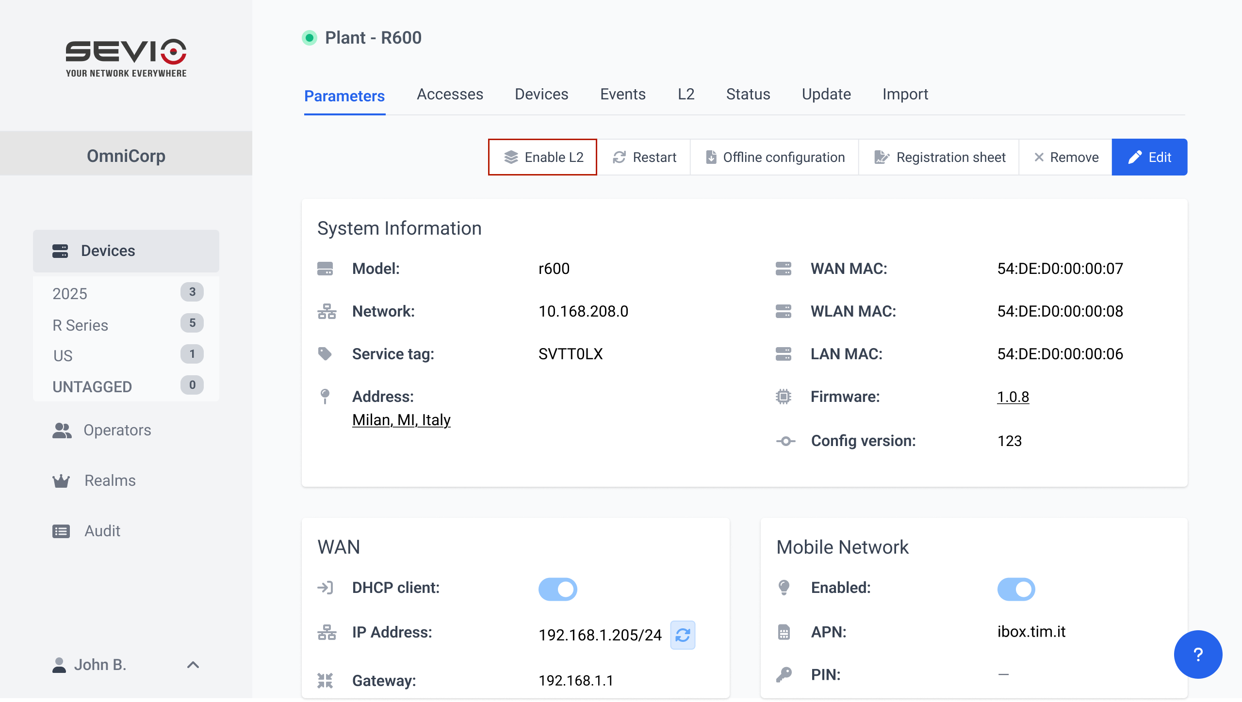Select the specific Router and reserve Layer 2 connection through the Enable L2 button.