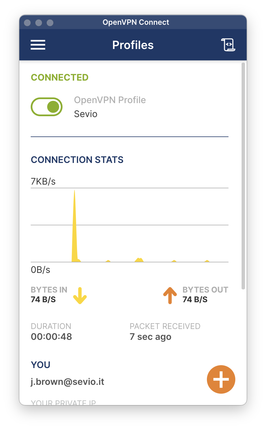 If the MFA method is enabled, the VPN Client will connect, but access to LAN networks will remain suspended until the Operator's identity is verified through an OTP sent via email.