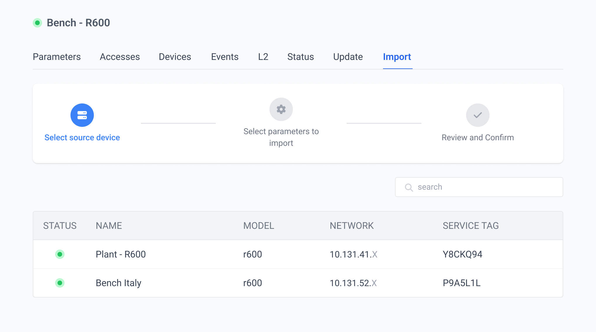 | Select the source Router | Pick the source Router from the filtered list. The list only shows Routers compatible with the destination Router, belonging to the same Realm, model, and firmware version. | |
