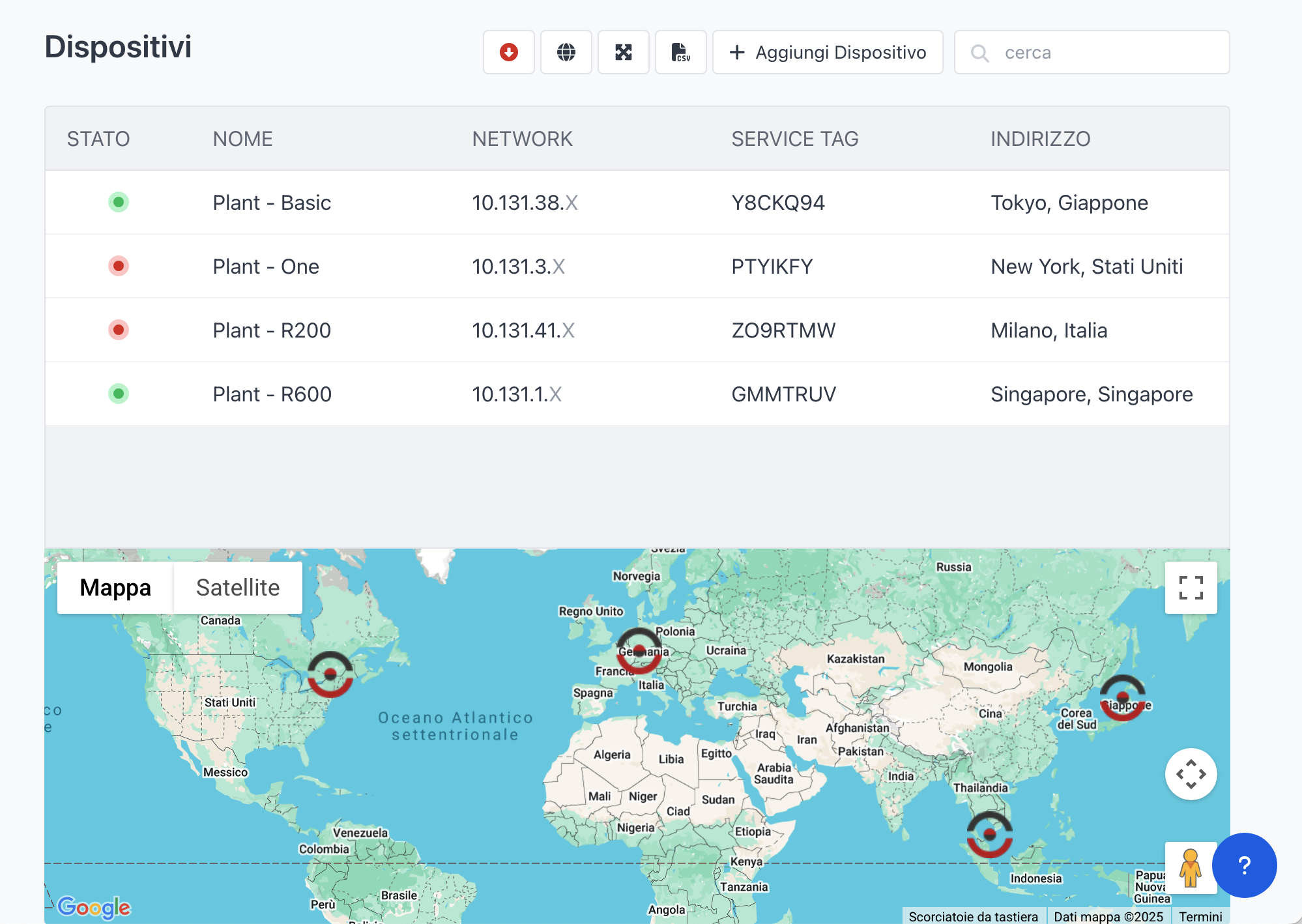Consente di visualizzare in modo interattivo la posizione dei Router sulla mappa. Se è stato impostato un indirizzo al Router, la mappa ne mostrerà la posizione precisa.