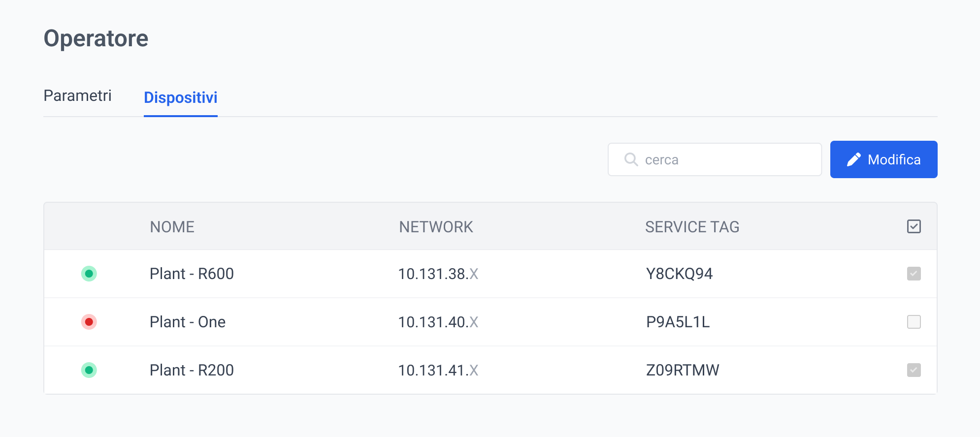 Nel Submenu Dispositivi è possibile visionare e modificare l'elenco dei Dispositivi accessibili dall'Operatore.