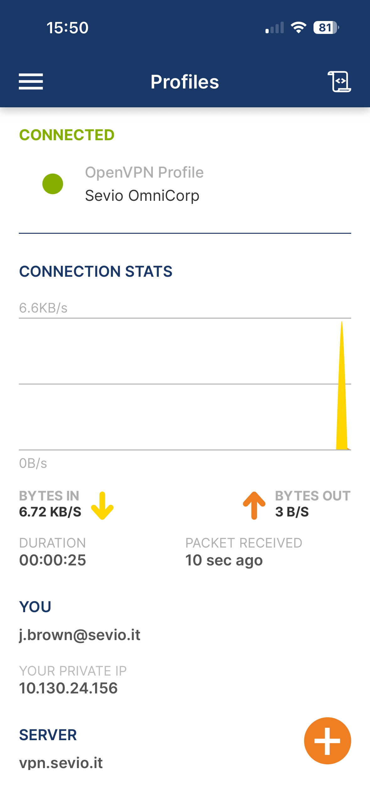 Scaricare da Sevio Portal (Area Personale > oVPN Files) il file OpenVPN dedicato alla VPN di Reame.
